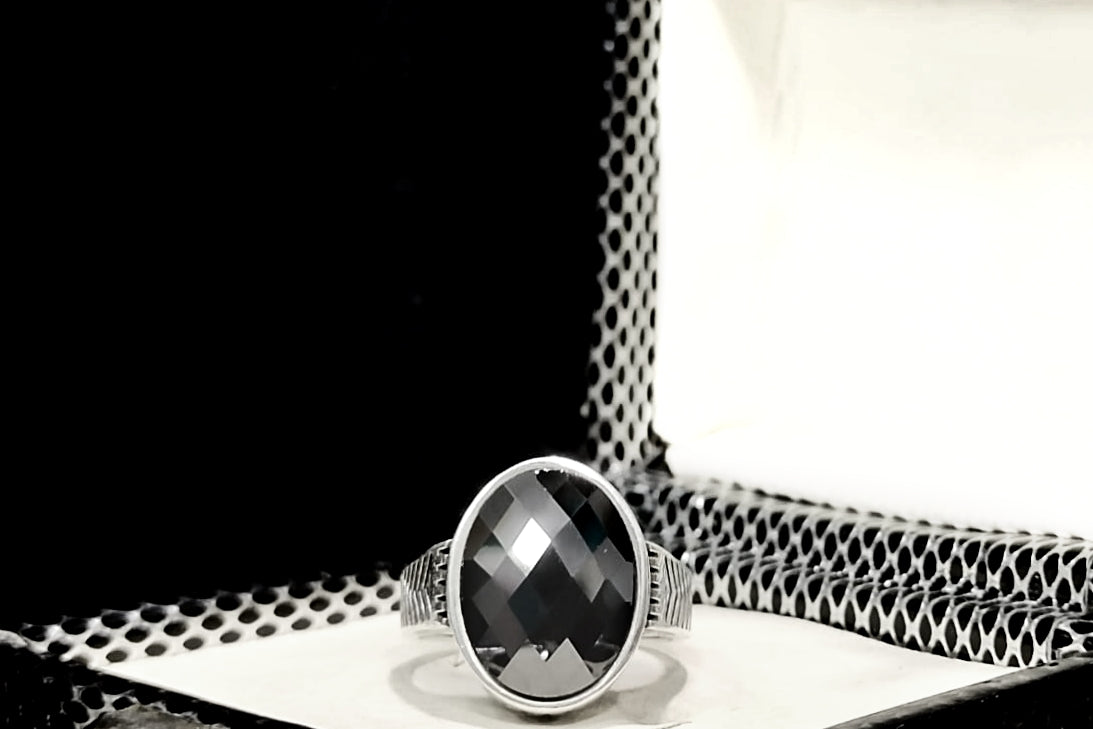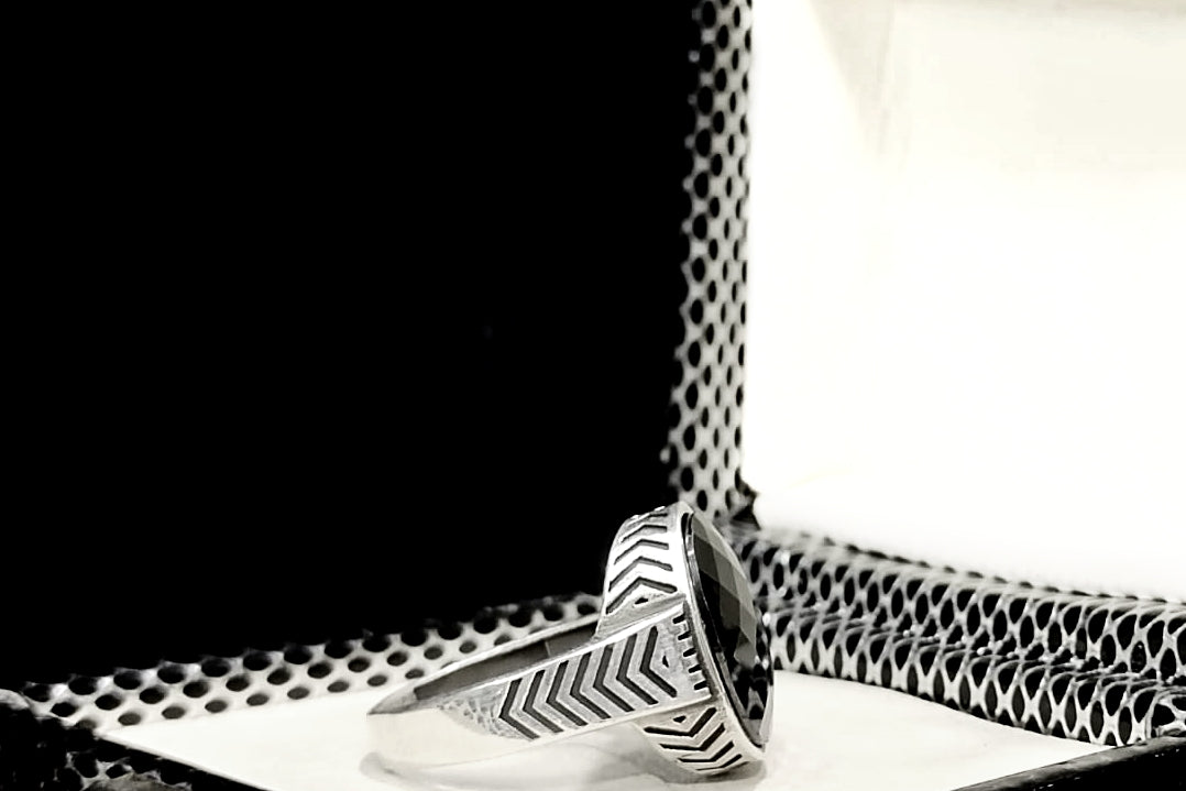 Crafted for men, this ring features a striking black Zarcon gemstone, set in a traditional Turkish design. Elevate your style and make a statement with this exclusive and timeless piece. Perfect for any occasion.