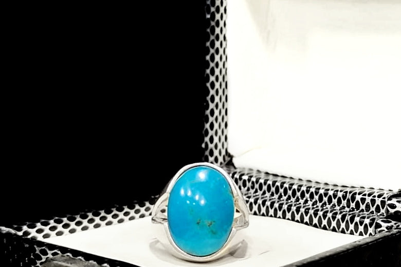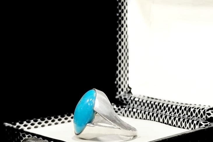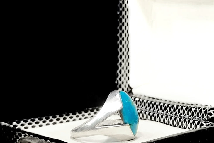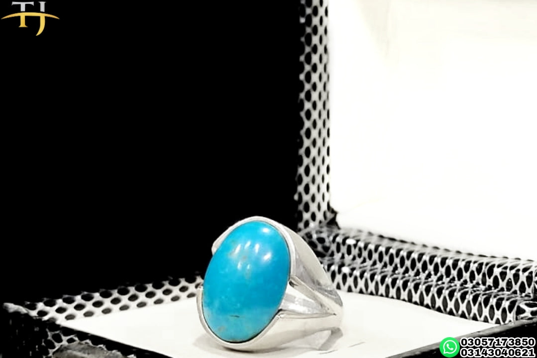This luxurious men's ring features a mesmerizing Irani Feroza gemstone in a delicate sky blue hue. Handcrafted in Turkey, this ring exudes elegance and sophistication, making it the perfect statement piece for any occasion.
